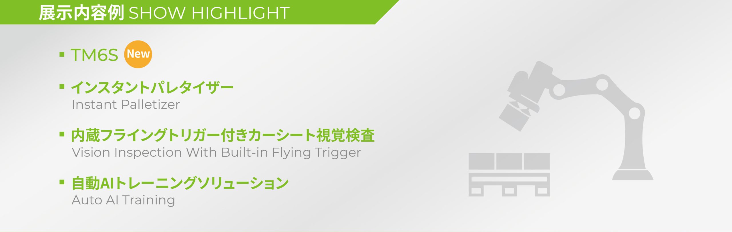 展示の目玉である「Flying Trigger(フライングトリガー)検査」は、テックマンロボットが独自開発した高速AI協働検査ソリューションです。TM AI Cobotに搭載されたスマートビジョンにより、ワークが移動中でも停止することなくリアルタイムで欠陥を高精度に判定。生産ラインを止めることなく検査を実施でき、検査効率と生産能力の大幅な向上を実現します。本技術は