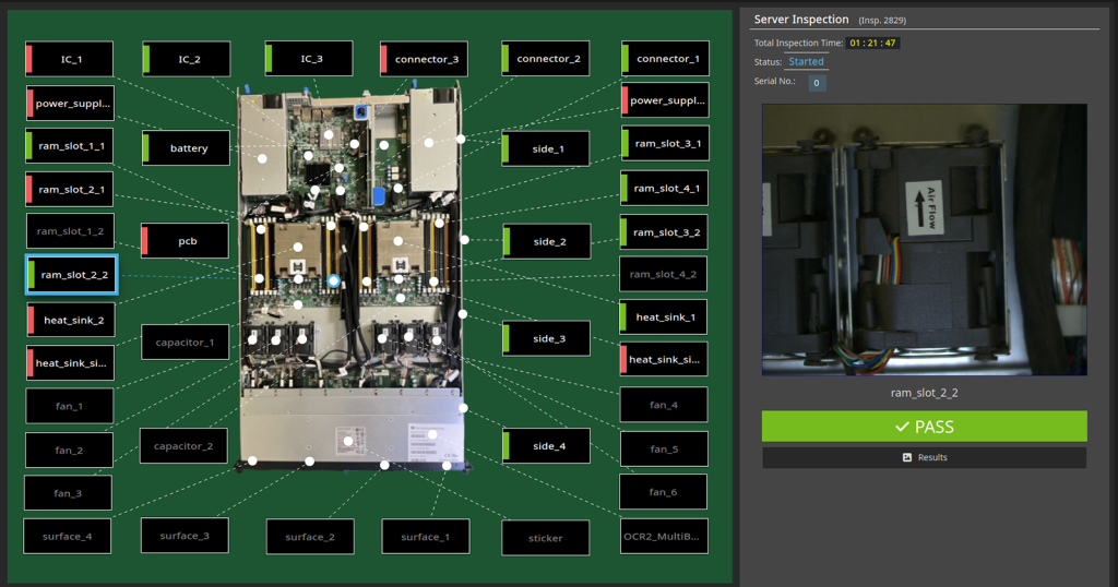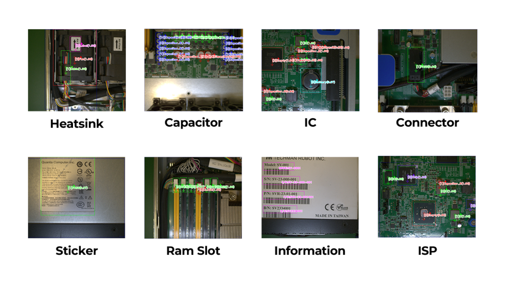 在伺服器的出貨前檢測階段,人工檢查不僅耗時,還容易受到疲勞與主觀判斷影響。隨著伺服器結構日益複雜,檢測項目如 Connector、束帶、Connector Cap、Cable 走線、電池、SSD 以及螺絲有無 等,都需要高精度與一致性的檢查標準。若僅依賴人力,容易導致 漏檢、誤判與品質不一致,增加售後風險與生產成本。